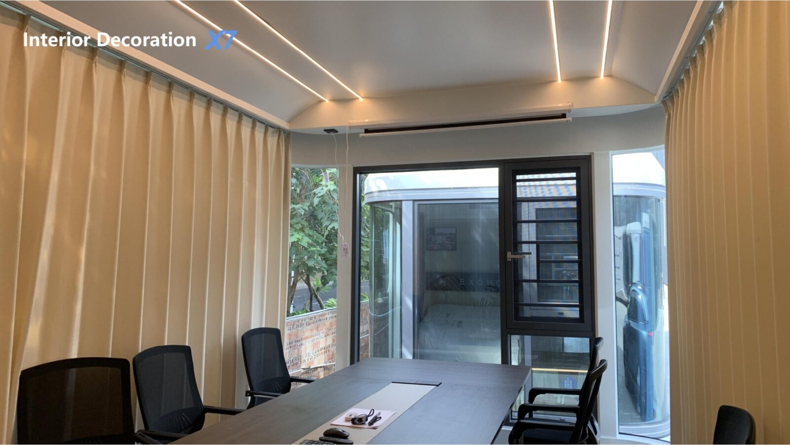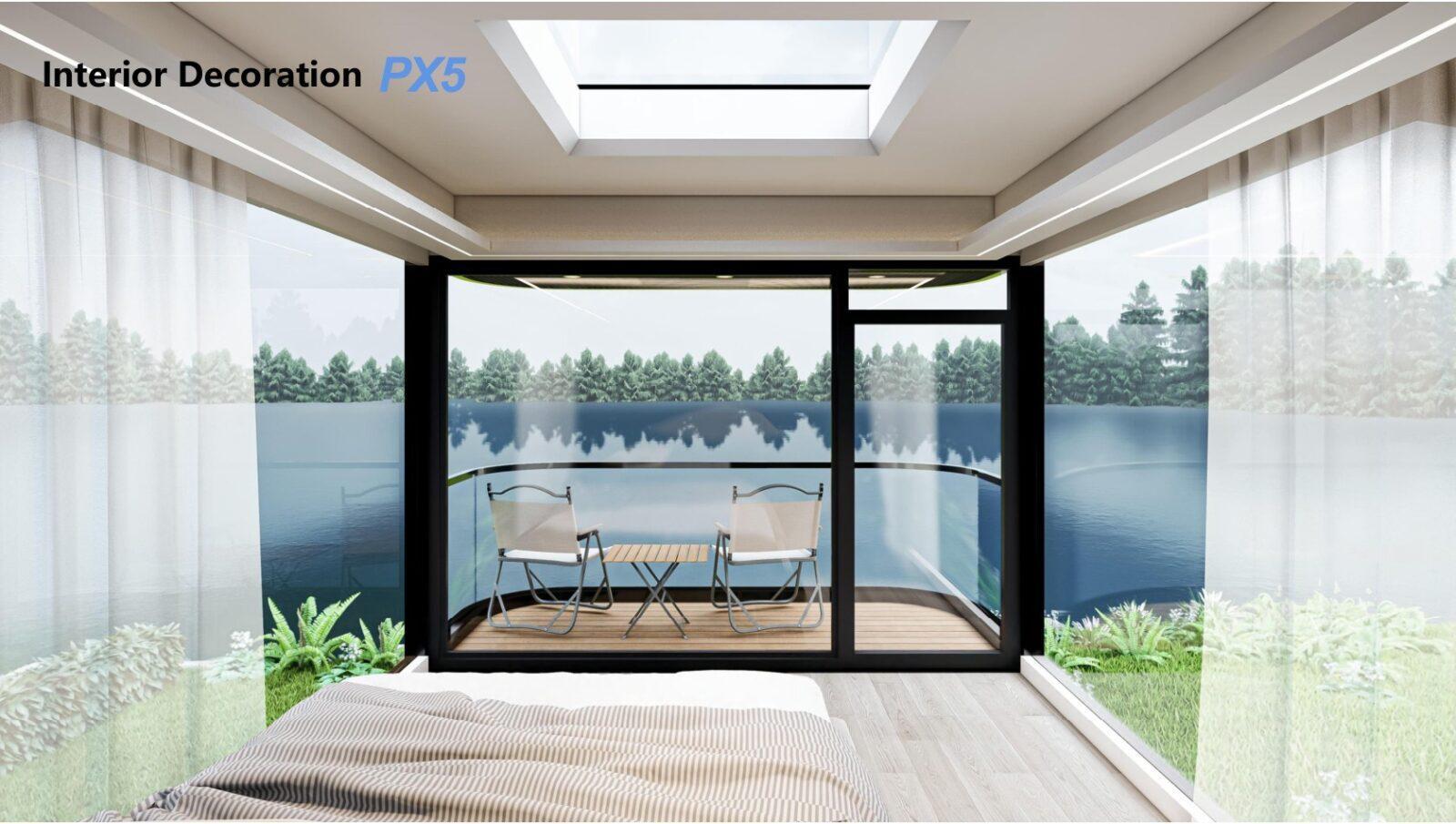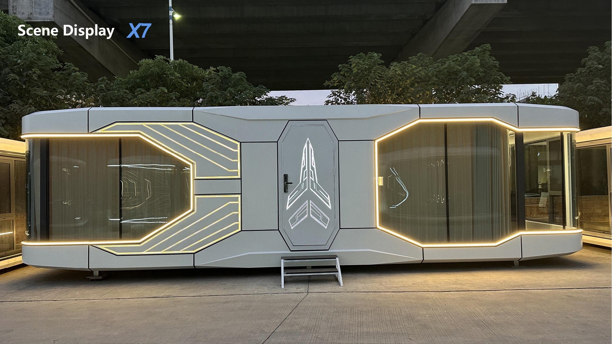 X7 je premium “capsule” model za glamping/resort smještaj i privatne projekte gdje želiš wow efekt i panoramski doživljaj. Dolazi gotovo potpuno dovršen (instalacije + kupaonica), uz opcije poput kuhinje i dodatne opreme (klima, bojler, podno grijanje, pametni sustavi).